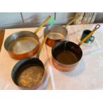 Old copper and brass handled pans (including the auctioneer's coffee mug which is not included!) - quantity 4
