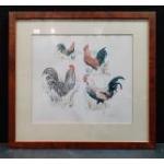 An attractive print of four cockerels. Nicely framed. Frame size 43cm x 40cm approx.