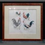 An attractive print of four cockerels. Nicely framed. Frame size 43cm x 40cm approx.