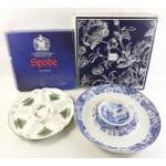 Two boxed SPODE hors d'oeuvres dishes, one Christmas (30cm approx) the other 37cm diameter
