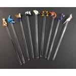 Nine glass animal feature COCKTAIL STIRRERS to include a cockatiel - 20cm length each approx
