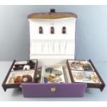 A nice quality Jacob jewellery box containing a nice selection of pretty and very wearable vintage brooches including parrot, hedgehog and much more. Box could do with a minor repair to the lid.