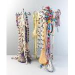Two dressing table stands dripping with pearls and necklaces. A super quantity of good pieces.