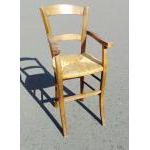 An early twentieth century French child's chair with woven reed seat in good condition. A pretty and functional piece. Standing 85cm to seat and 50cm to the seat pad approx.
