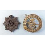 An original brass British Military CORPS OF COMMISSIONAIRES cap badge and a WWII Bakelite RASC badge