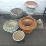 A selection of five plant pots to include one large terracotta, an urn and others.