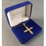 CAMROSE & KROSS. Pretty gilt replica Jacqueline Kennedy collection cross on gilt chain.