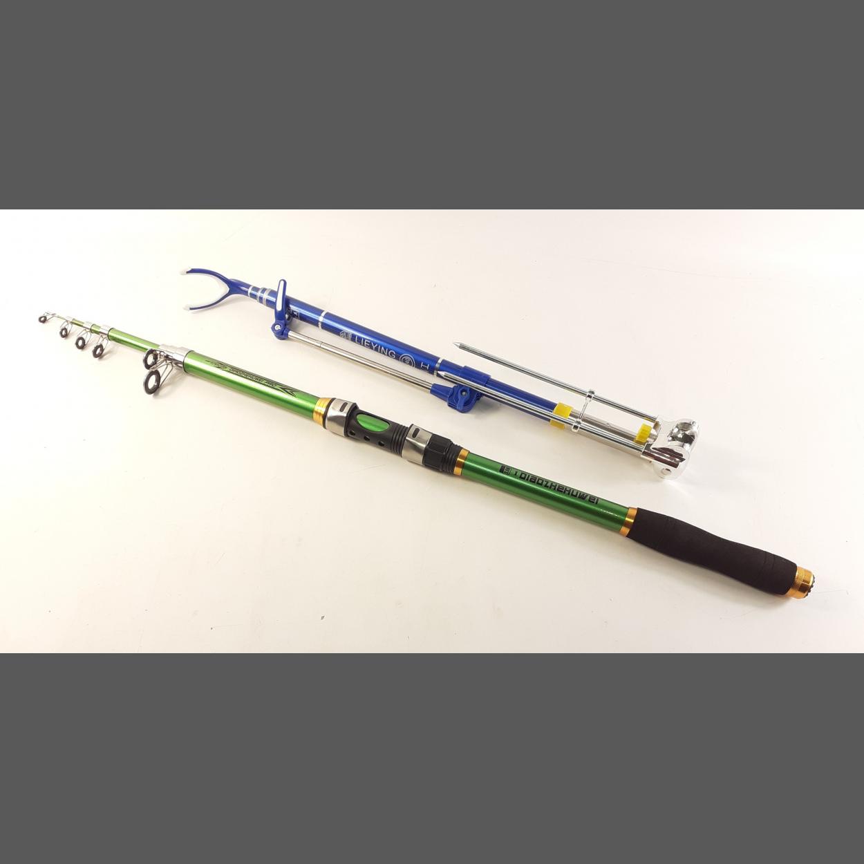 DIAOZHEHUWEI 3.6m 6 piece telescopic fishing rod with folding stand.