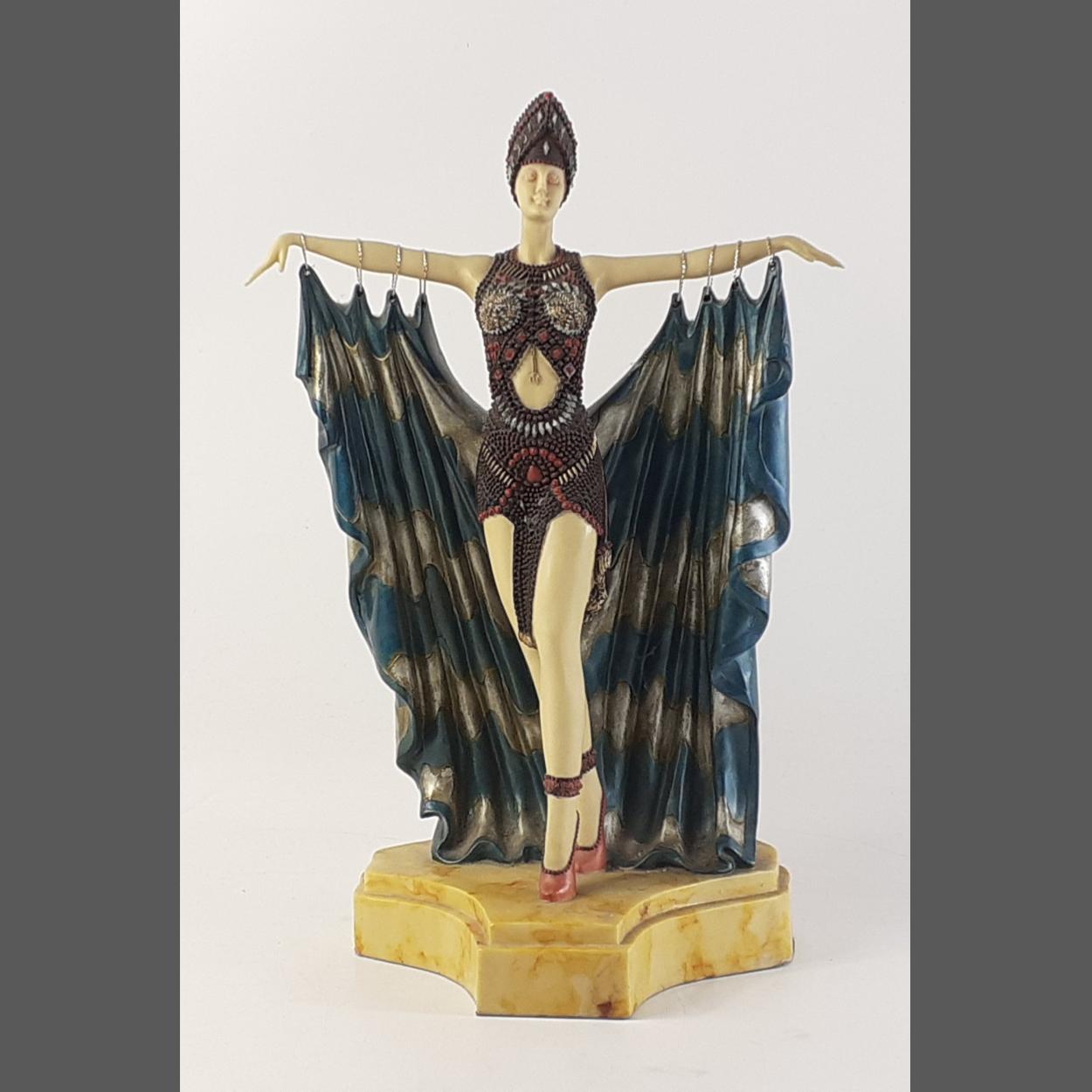 A lovely modern ART DECO figure of an elaborate dancing girl. 38cm tall and approx on a heavy solid base.