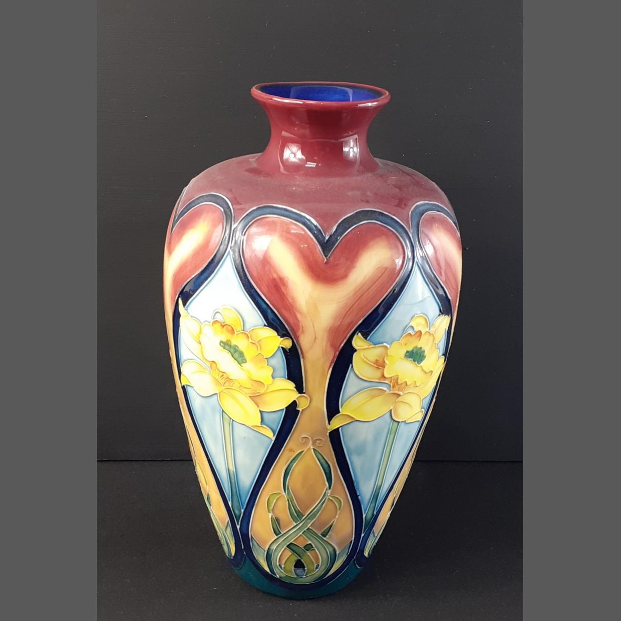 An OLD TUPTON vase decorated with raised daffodils standing 26cm tall approx