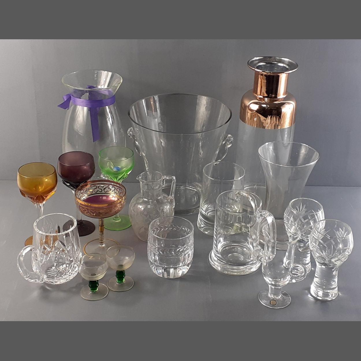 NICE QUALITY! Mixed lot of useful glassware, vases, glasses, bowls etc. Includes pretty coloured glasses.