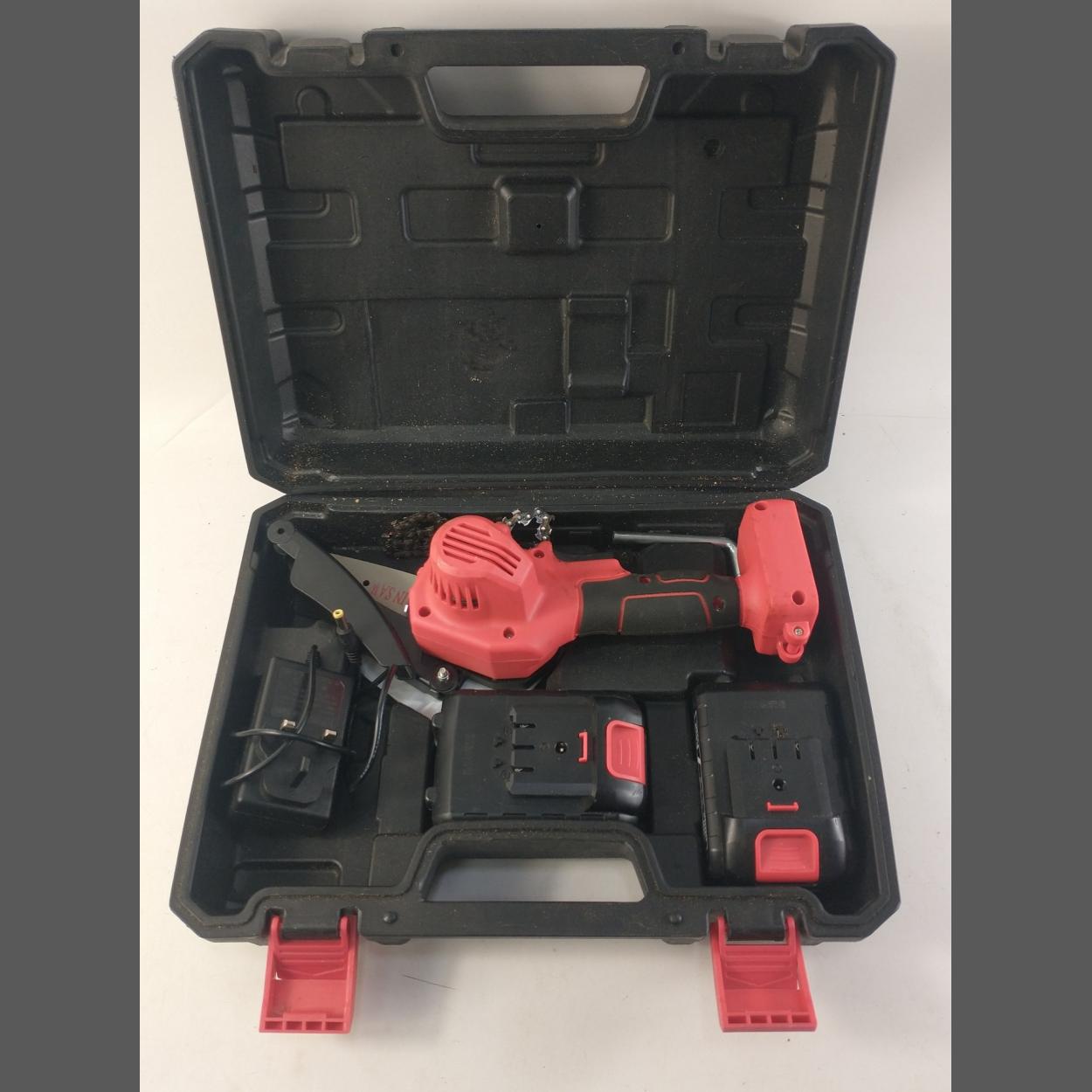 Lovelife 2000 Mah hand held chain saw in case with battery etc. Chain loose.