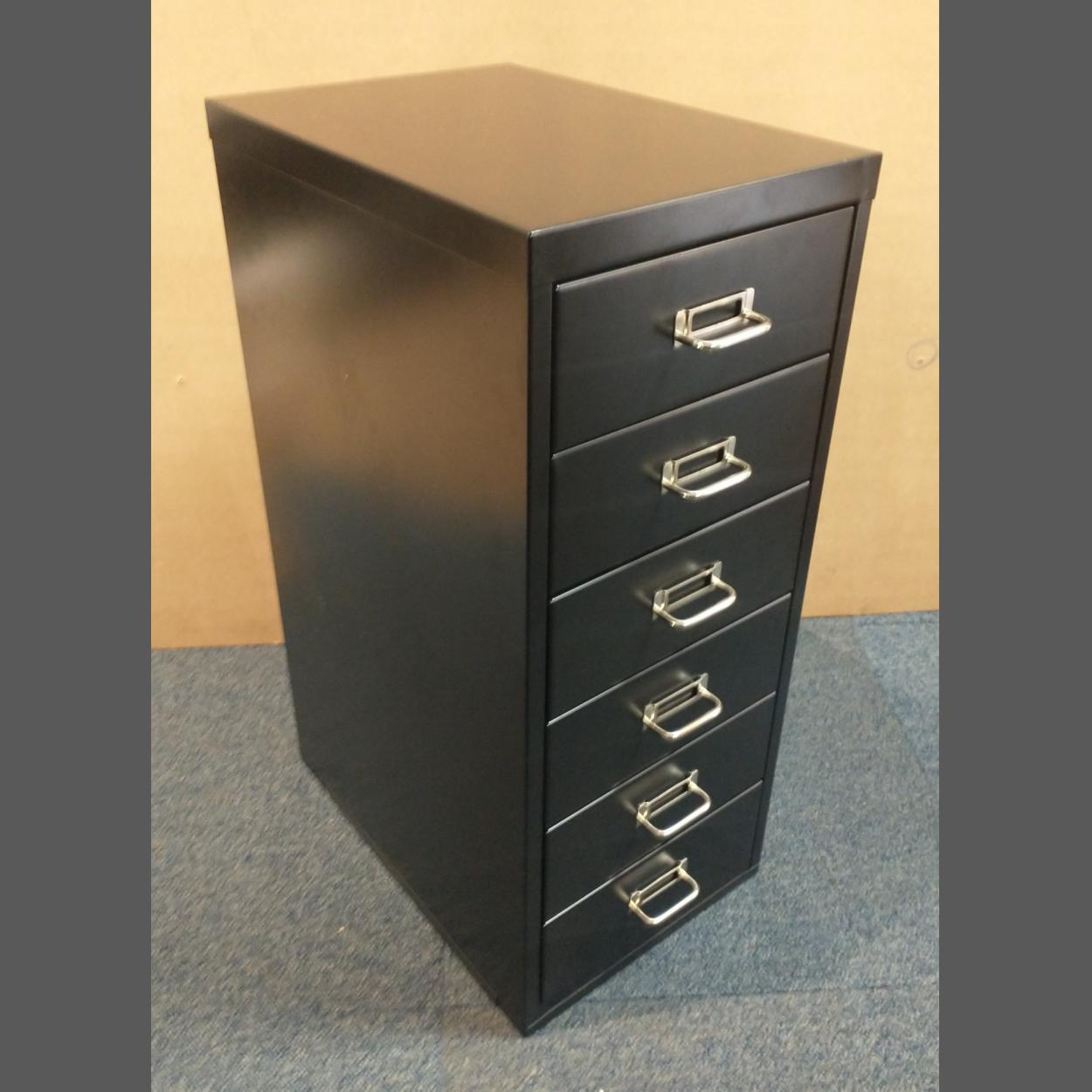 A small and very useful metal six drawer filing cabinet in good order. 67cm x 40cm x 28cm approx