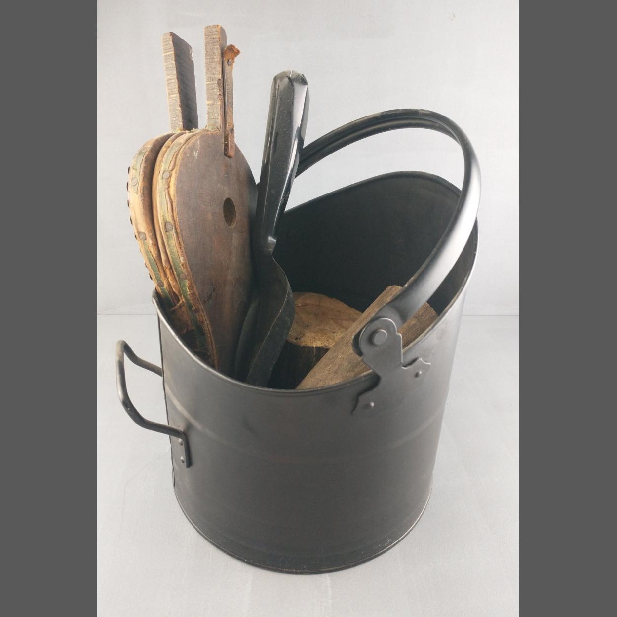 Metal fireside bucket with bellows etc. Good condition, a useable item.