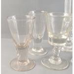 Small collection of old glasses to include one old liqueur glass with air bubble and rough pontil. One other with a rough pontil but a crack. And others, eight in total