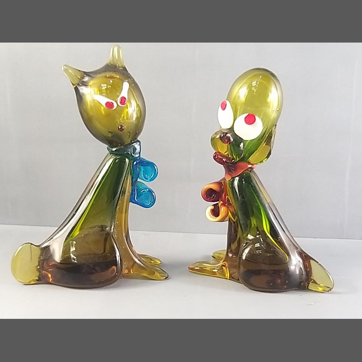 A 1970s MURANO style art glass cat and dog, each 19cm tall approx