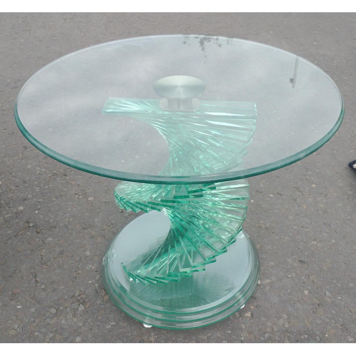 SUBSTANTIAL! An UNUSUAL RETRO helix style stand solid glass side table 60cm tall x 50cm diameter