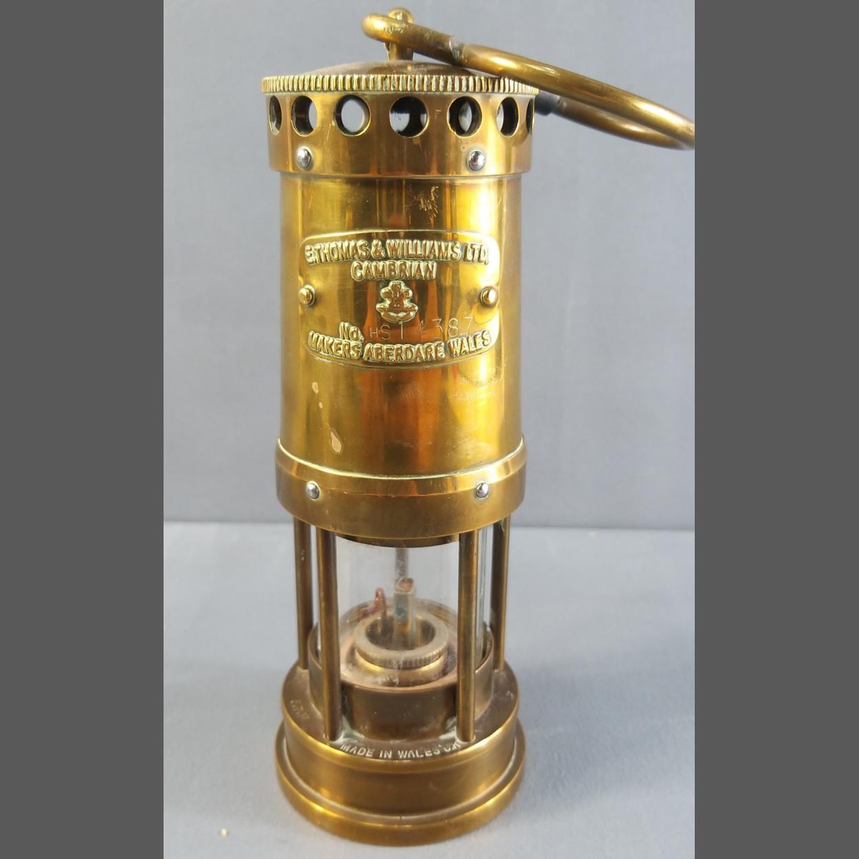Small decorative brass miners lamp. Thomas Williams, Cambrian, Aberdare.