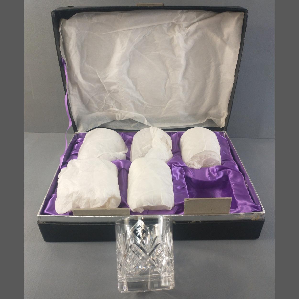 EDINBURGH INTERNATIONAL Italy set of hand cut six whisky tumblers. Boxed good condition.