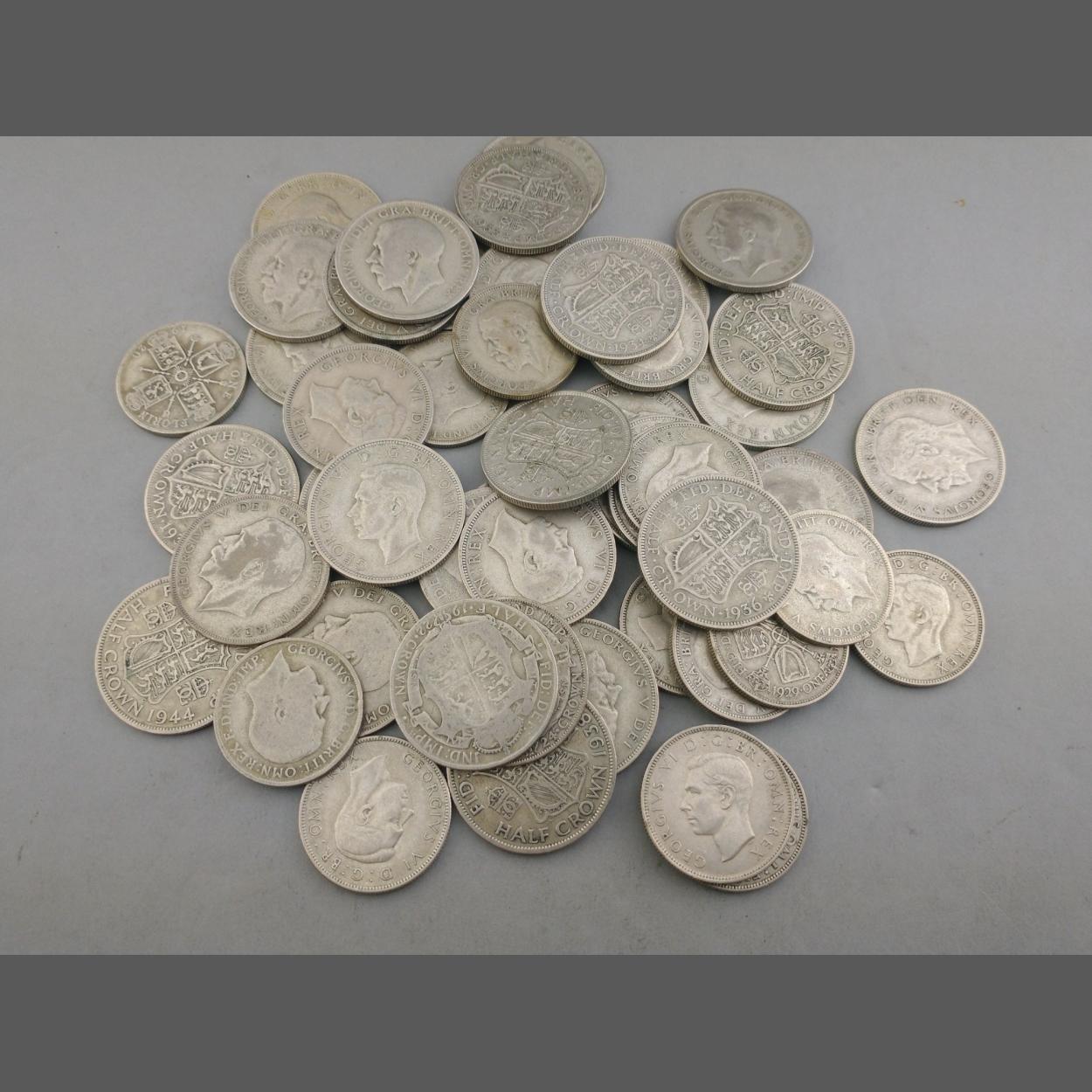 A good lot of pre-1947 0.500 silver content coinage both half crowns and florins. Gross weight 640g approx.
