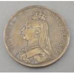 A 1892 Victoria silver crown coin. Overall good detail with toning.