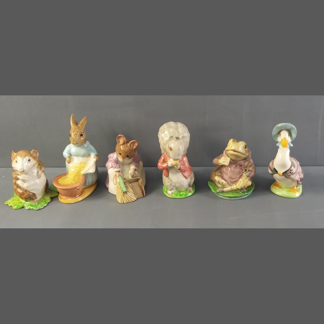 Six wonderful F Warne, BEATRIX POTTER'S animal models. Small chip noted to Jemimas cap otherwise all in good