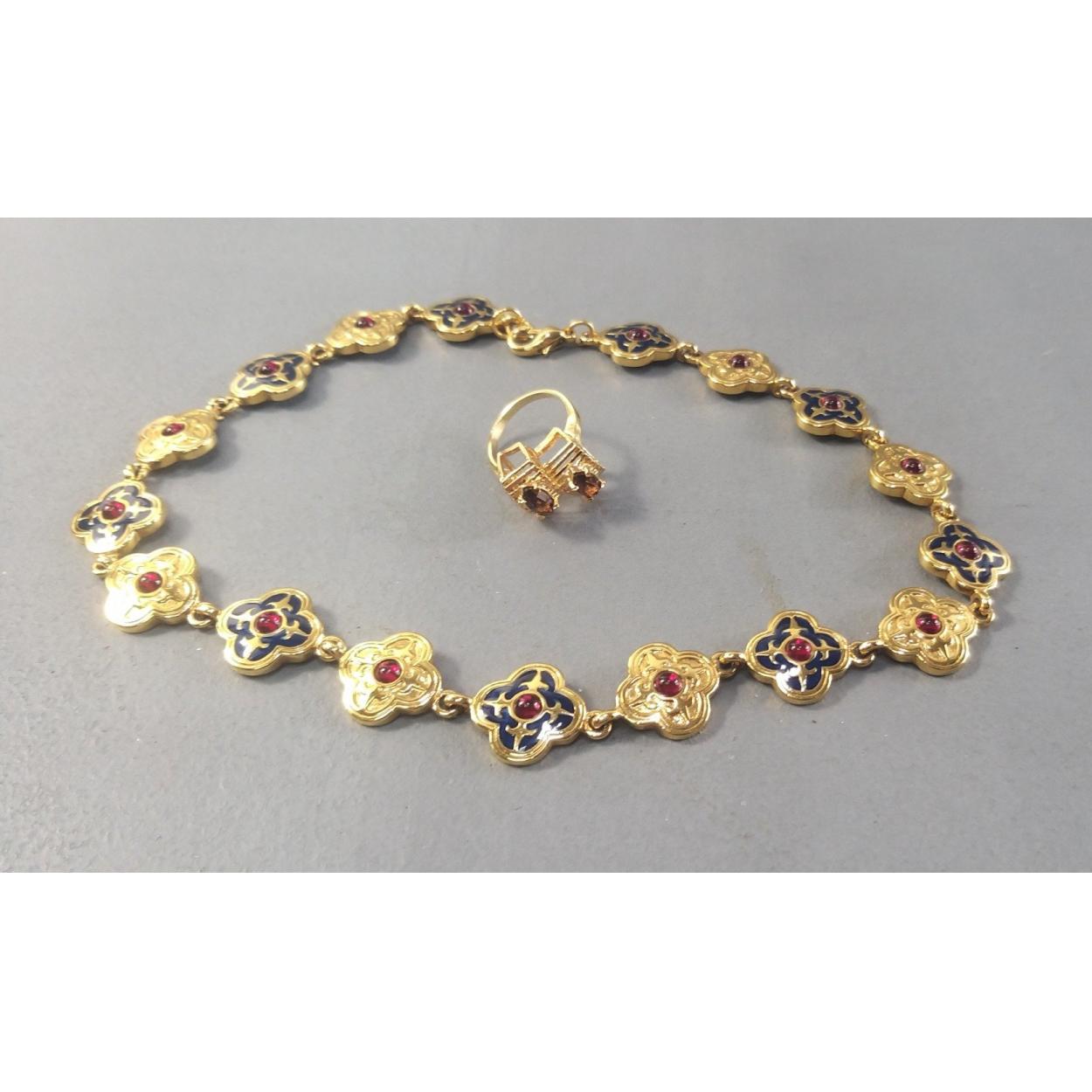 Past Times Tudor Renaissance Medieval revival plated necklace in good order, 38cm long approx. Box includes a plated ring.