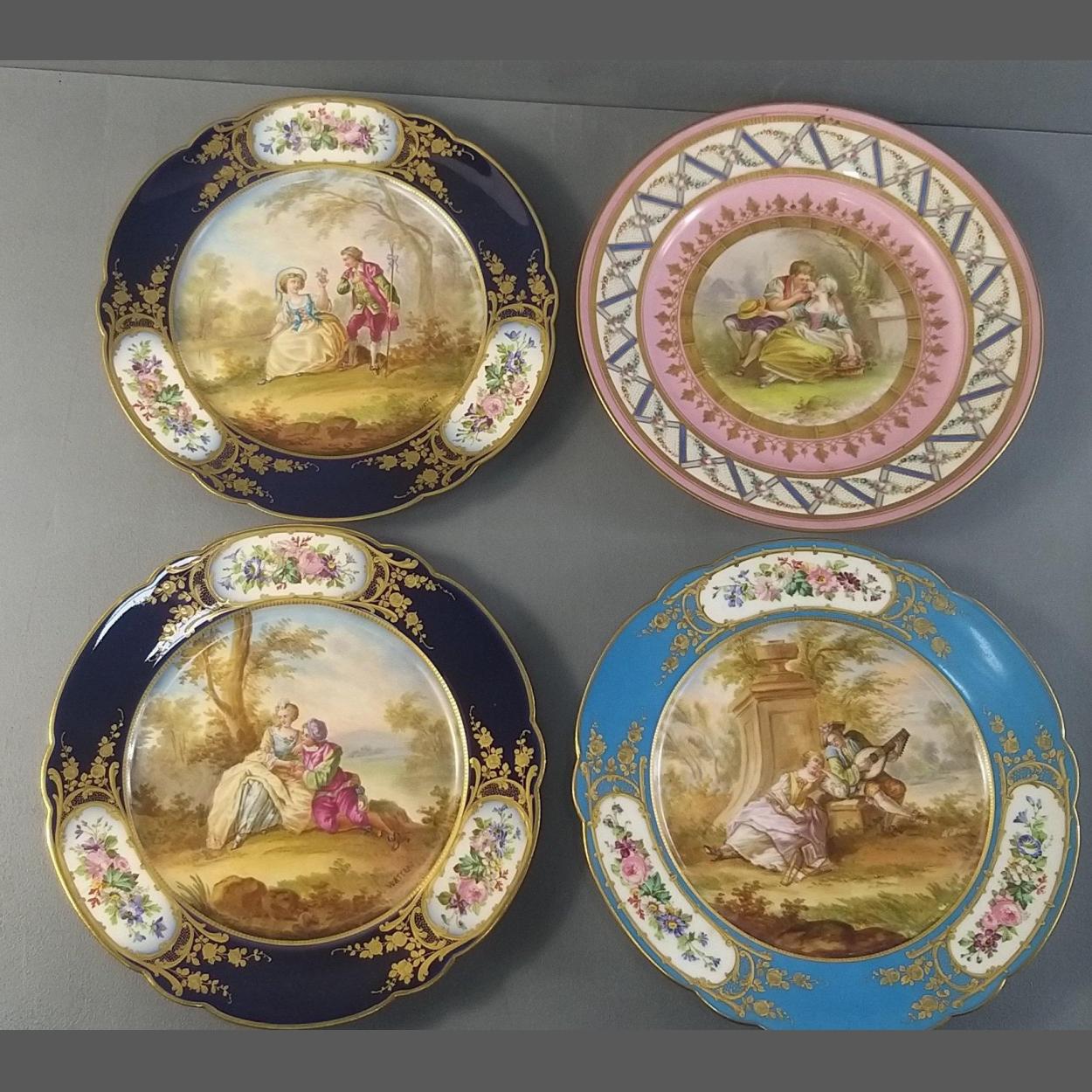 Four SEVRES Chateau des Tuileries plates. Each 23cm approx and all in good condition. Attractive quality pieces, well stored with no chips, cracks or rubbing to gilt.