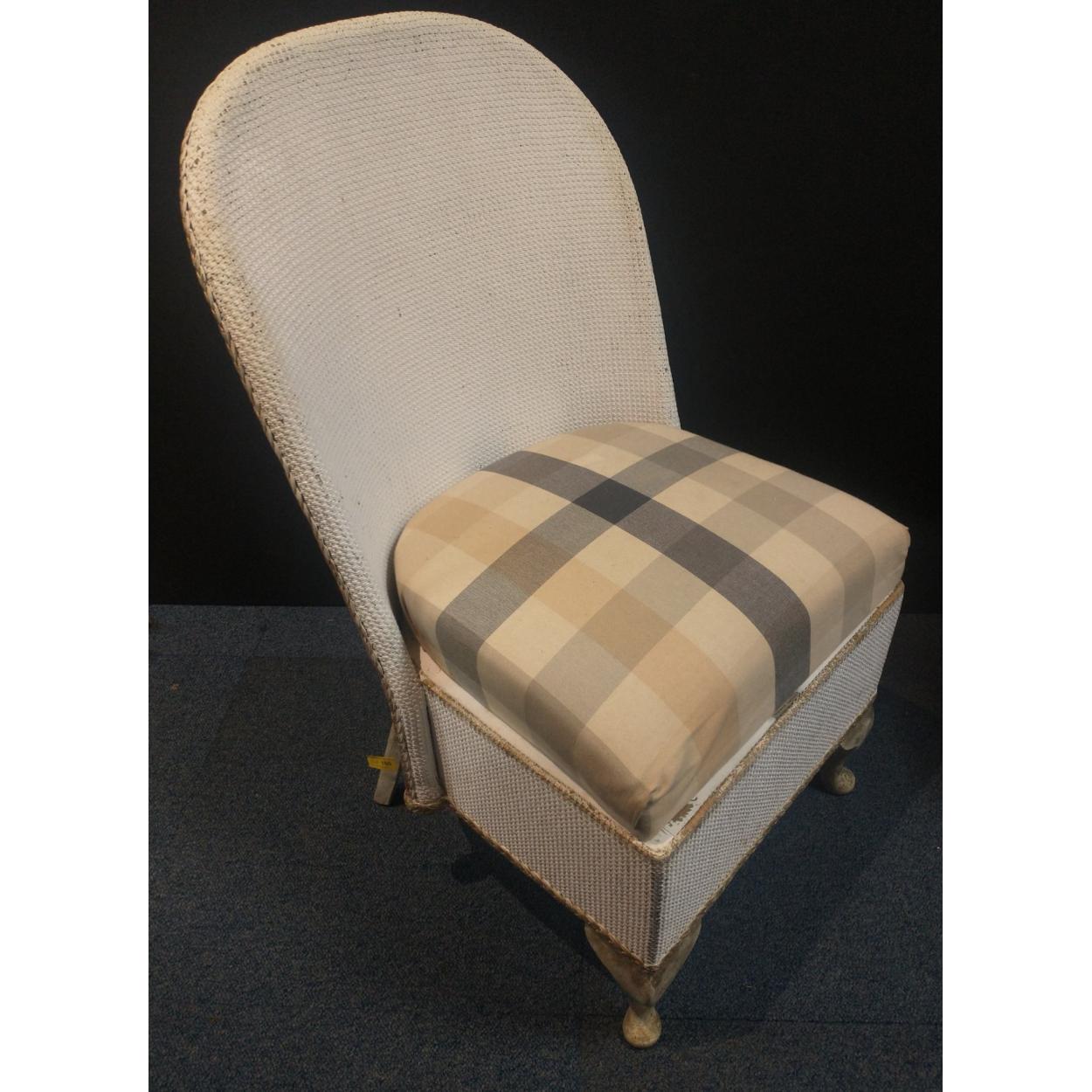 A VINTAGE LLOYD LOOM style white painted basket-weave chair with storage compartment