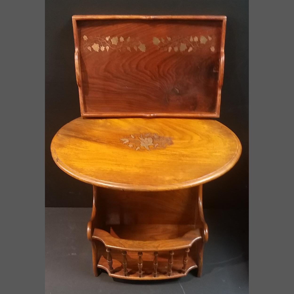 A handy wee side table with appealing metal inlay and an Indian wooden tray.