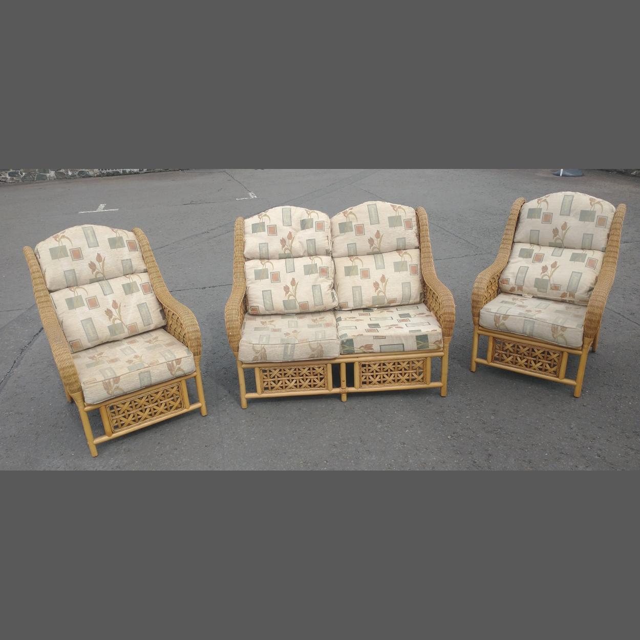 SUPER QUALITY REED conservatory suite of 2 armchairs and a 2 seater - really comfy! - In good clean condition.