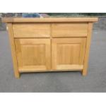 Modern SOLID OAK sideboard with black glass inset, 2 drawers and 2 doors 148cm width x 28cm depth x 85cm height