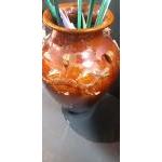 A pair of substantial highly-glazed dragon decorated pots, each 60cm tall approx, historical chip to one and broken handle. Both in same area so can be kept hidden from view.