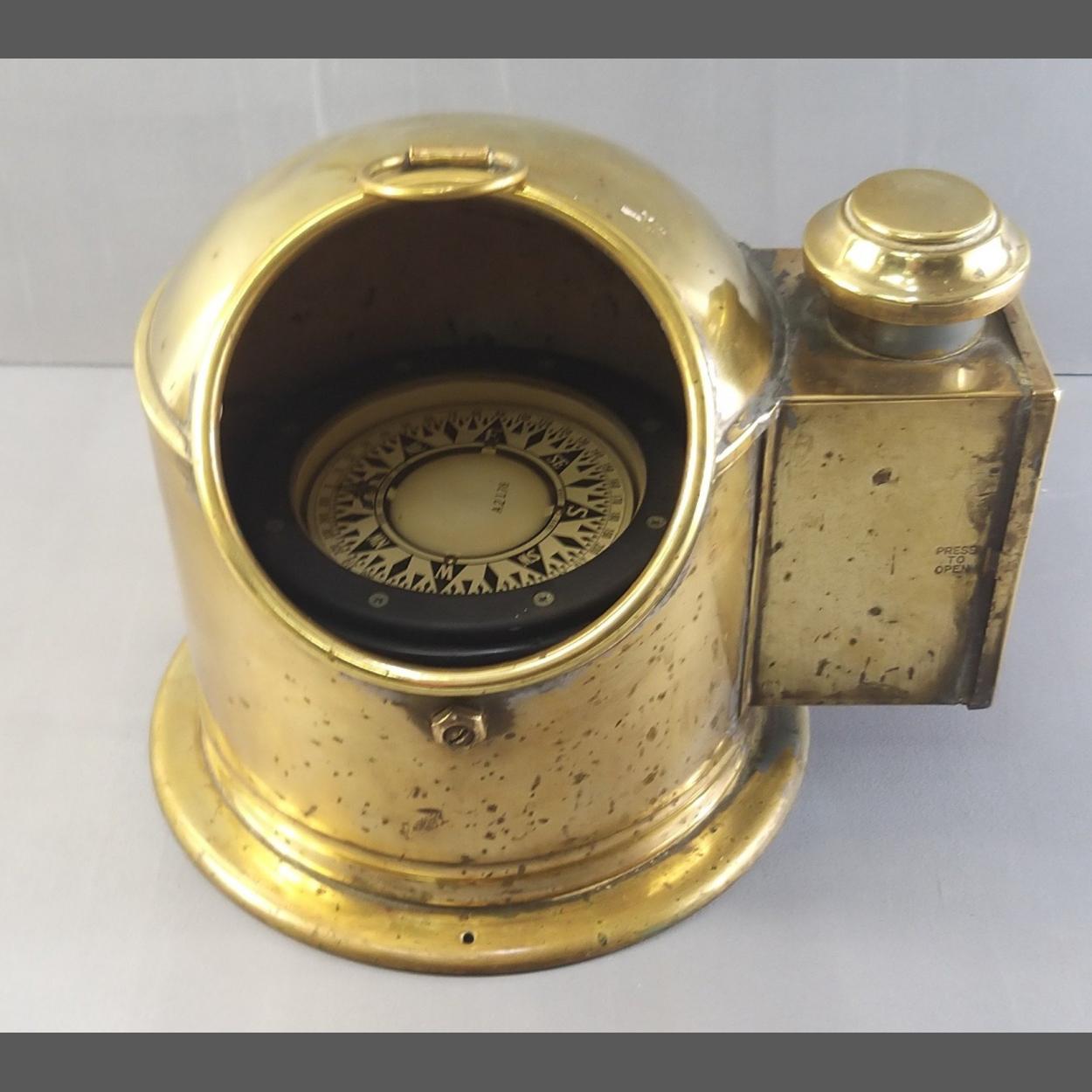 A brass binnacle compass with burner to side containing a Japanese military type B-100 Saura Kaiki compass