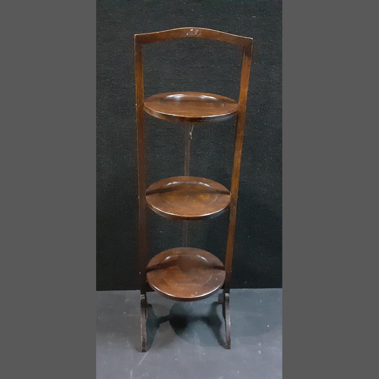 An earlier twentieth century folding cake stand in good used order. 84cm high approx.