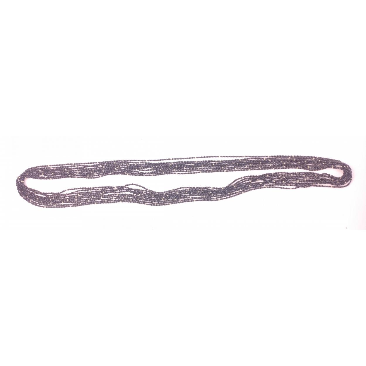 Ten strands of tiny threaded black beads with tiny seed gold coloured balls all within a Hamilton & Inches jewellers box. Approx 94cm long