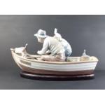 LLADRO 5215 ''Fishing with Gramps'' A superbly sculpted large model of boat Paloma with boy and dog fishing with Grandpa. 39cm approx and in undamaged condition. A very sweet piece.