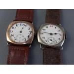 Two vintage cushion watches, one CYMA with cushion shape gilt case and one other similar with stainless steel case. Both A/F non running.