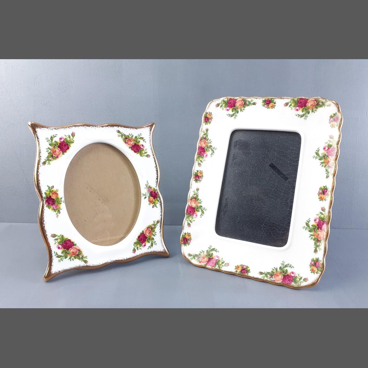 ROYAL ALBERT Old Country Roses. Two pretty picture frames, the largest 22cm x 16cm approx.