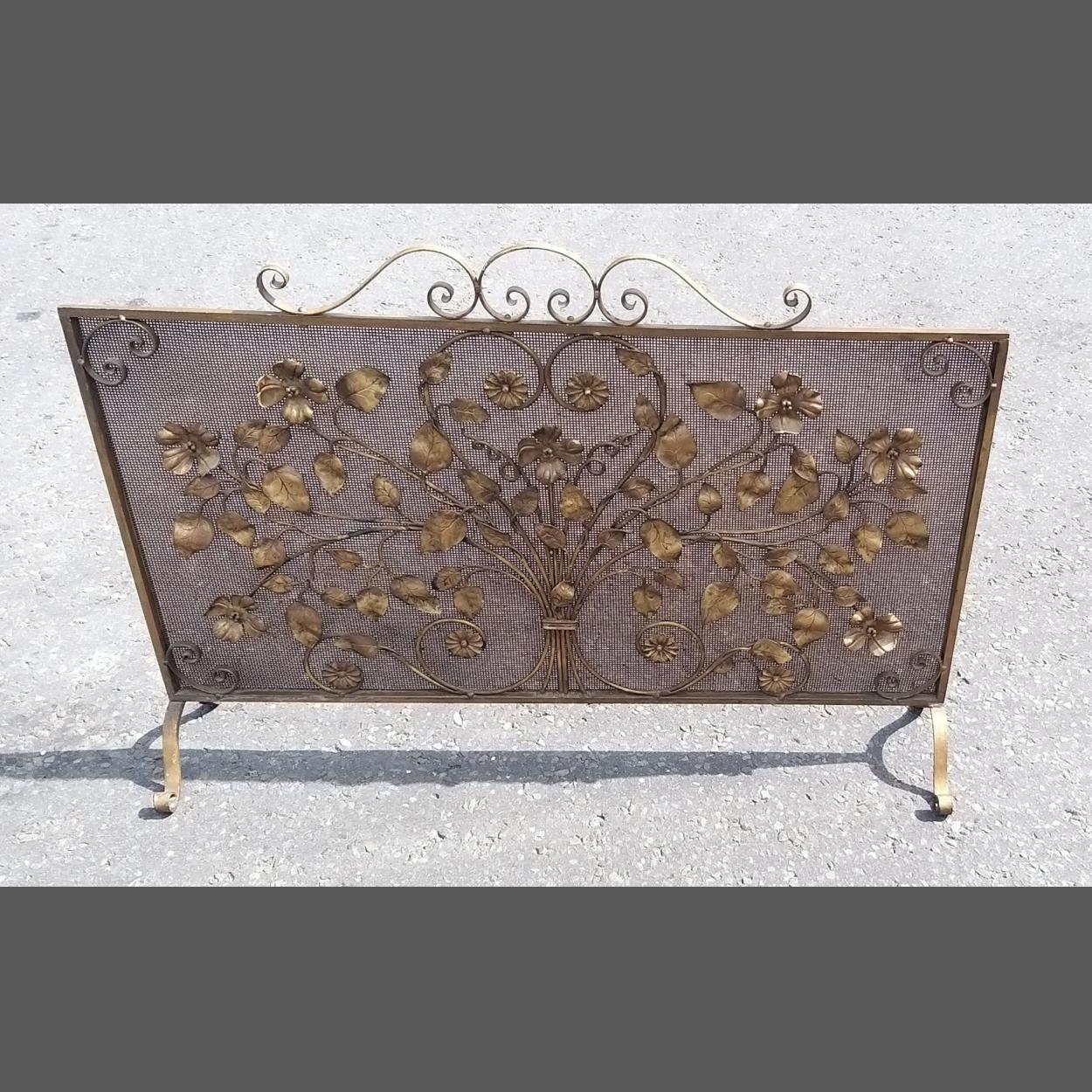 A large ornate metal floral fire screen. A stunning piece 107cm wide x 76cm tall approx.