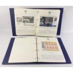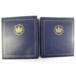 Plush WESTMINSTER MINT STAMPS & COINS albums filled with royal interest THE QUEENS GOLDEN JUBILEE. Each sleeve contains stamp cover with coin. The Royal Family album numbered 1309 contains 16 Crown / £5 Coins from around the Commonwealth. Also another album from the series with FDC First Day Covers and stamps.