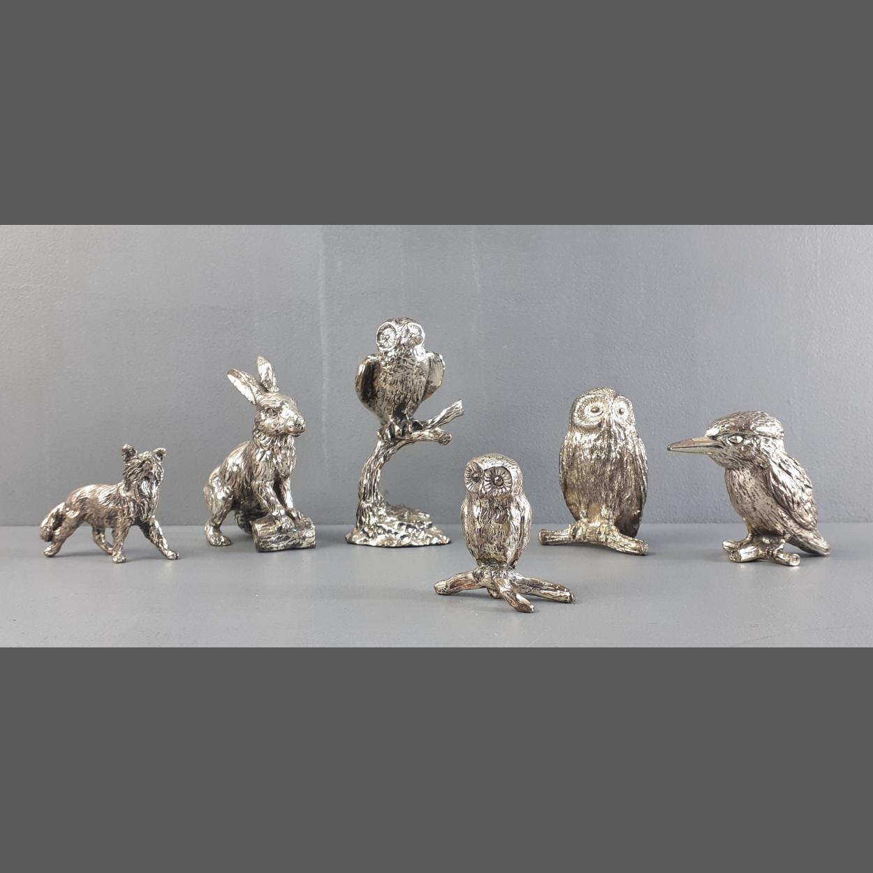 ROYAL HAMPSHIRE pewter figures. A great collection of animal figures - hare, kingfisher, owls etc.