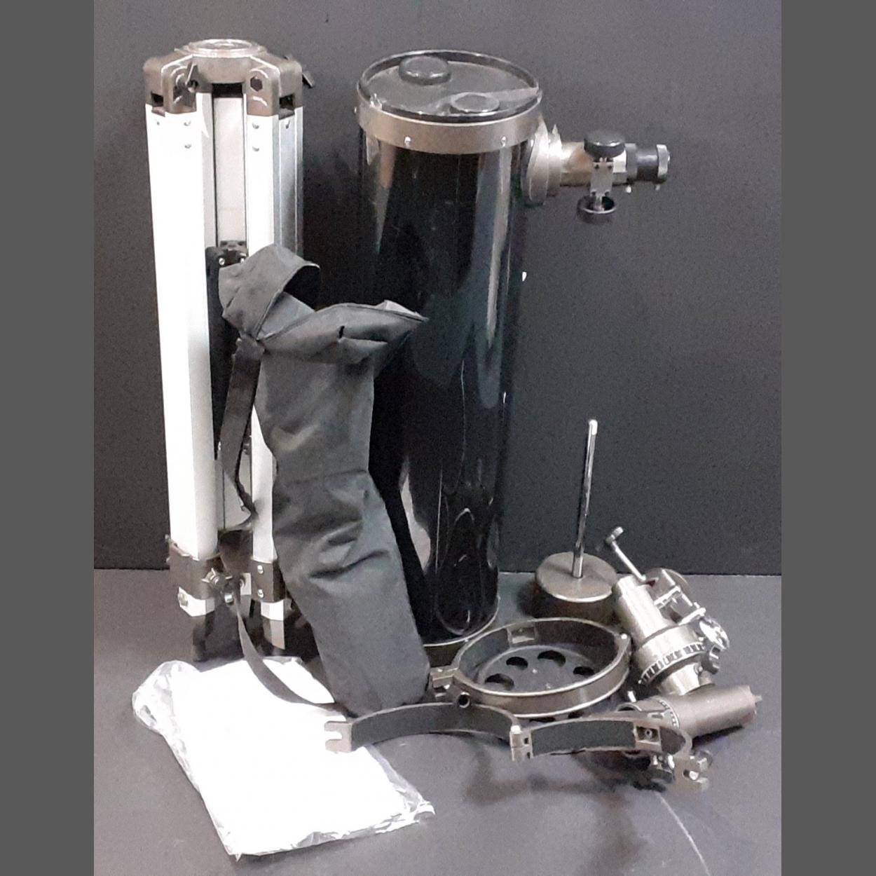 Back yard reflecting Short Tube Newtonian Equatorial reflector telescope, complete with accessories, spotting scope, tripod and mount.
