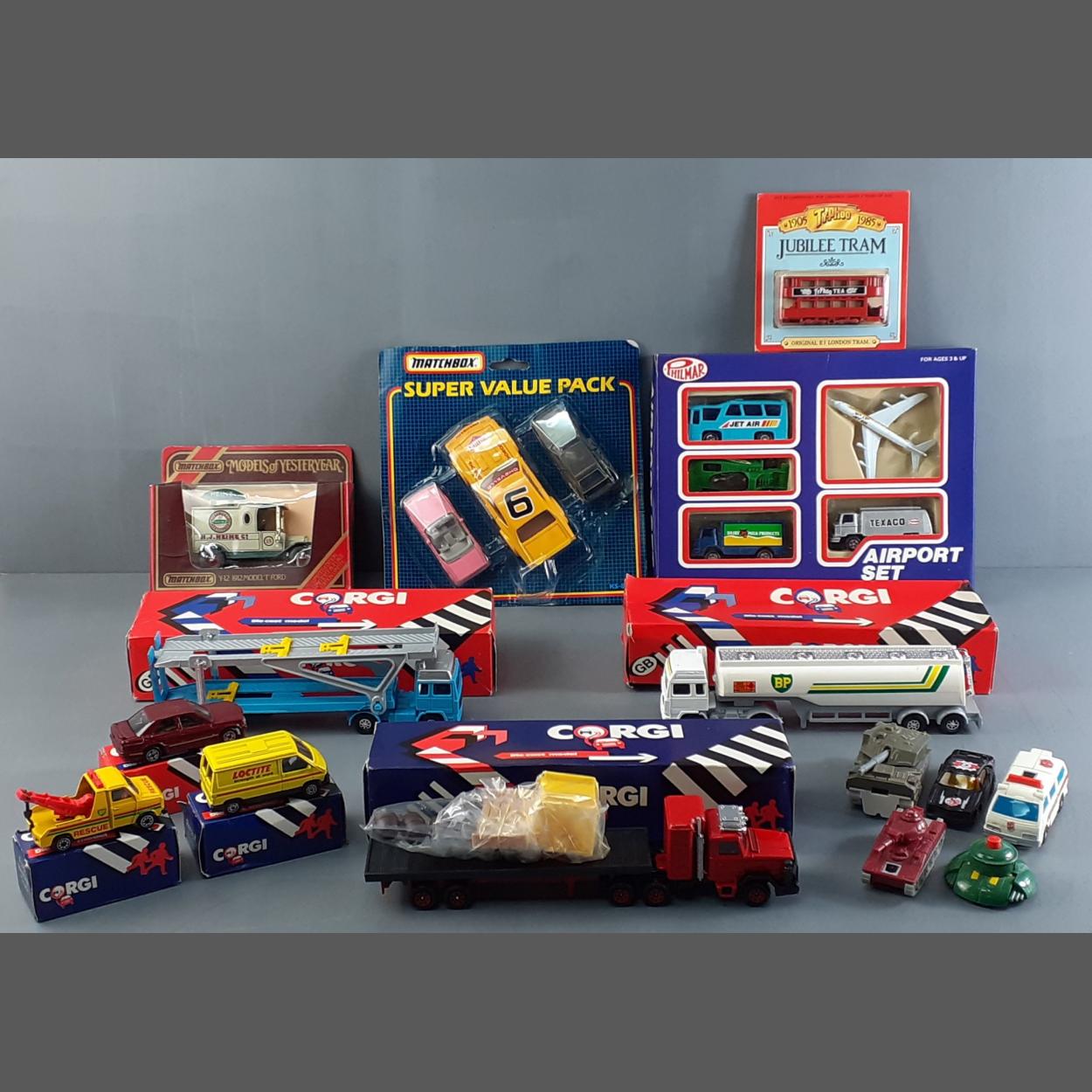 A small lot of good diecast models. MATCHBOX set and CORGIS in boxes etc.