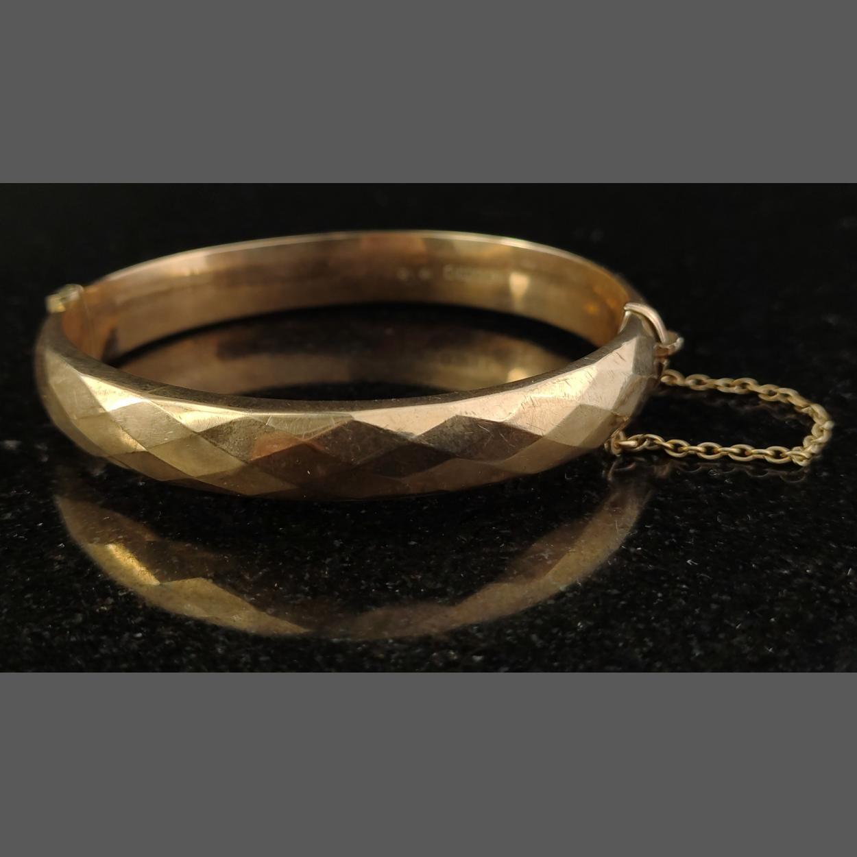 A fully hallmarked 9ct gold bangle with dents, weight 13.4 g approx