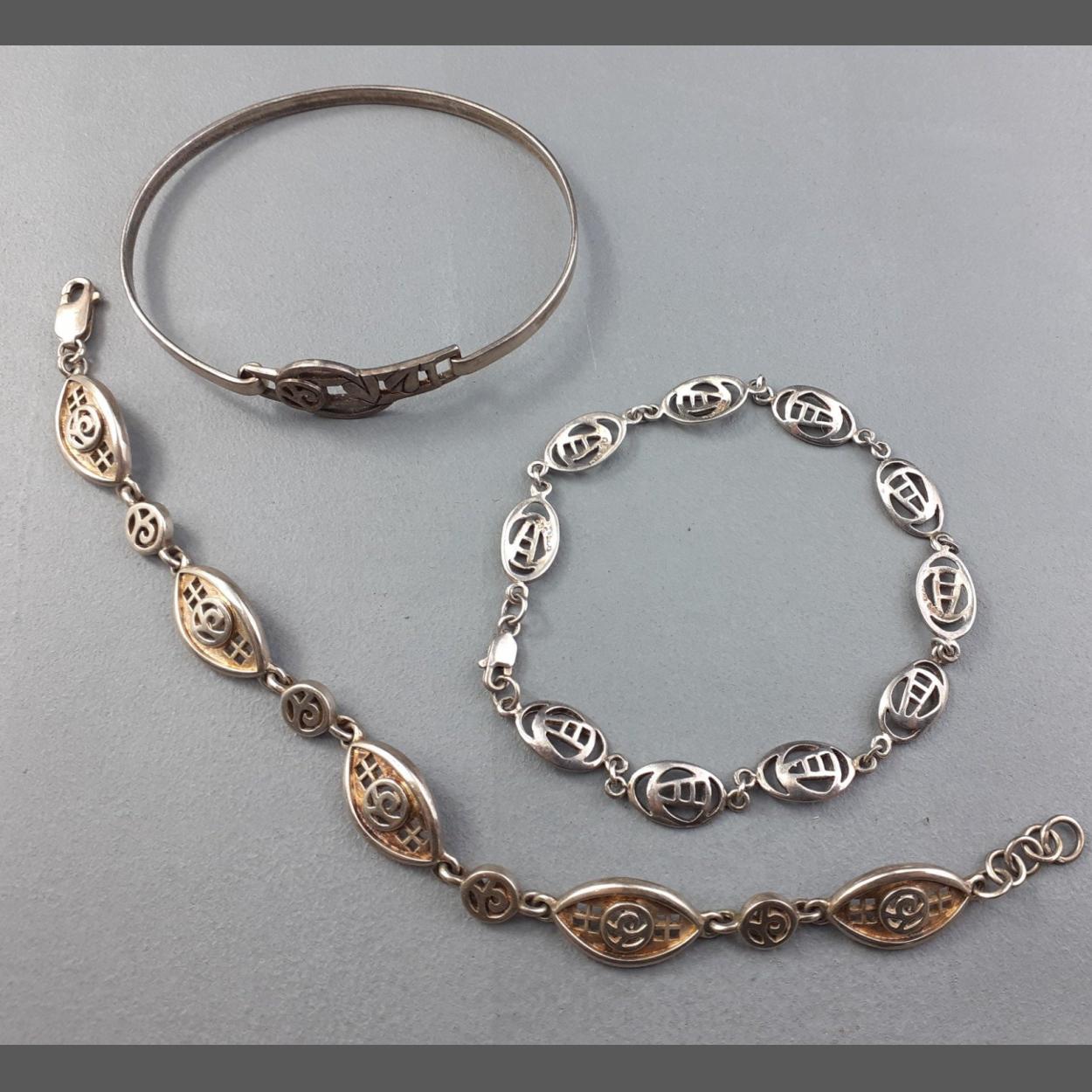 RENNIE MACKINTOSH sterling silver collection. Includes bangle and two bracelets. Weight 28.6g approx.