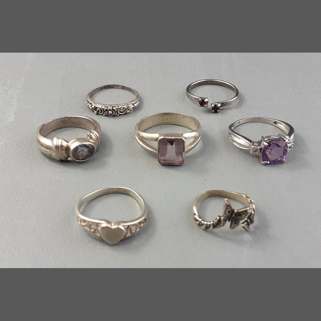RINGS GALORE! Seven silver / 925 stamped rings with stones. A great little collection. 18.2g gross weight approx.