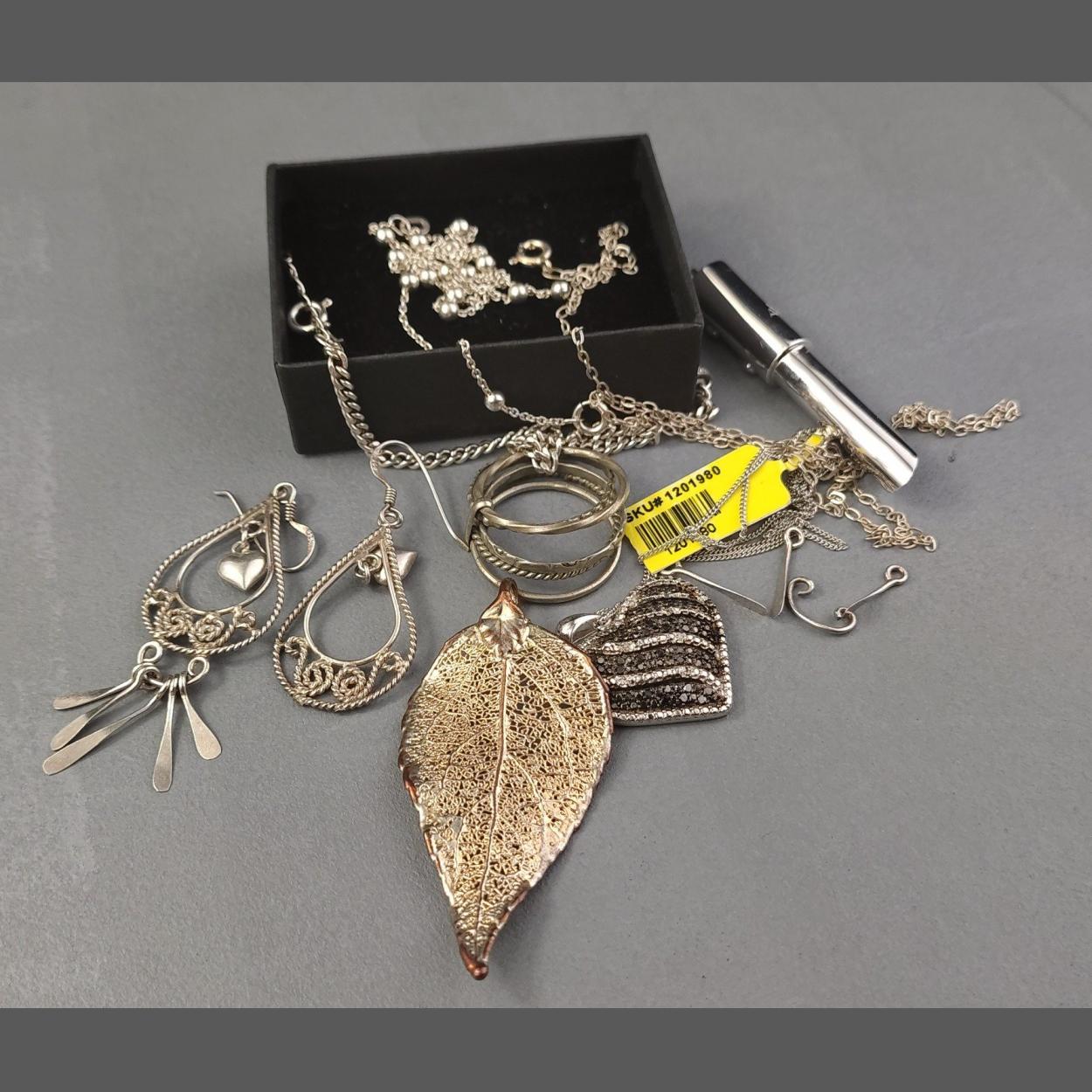 UNUSUAL! A small silver lot to include hoop earrings, bracelet, chain and ring plus others