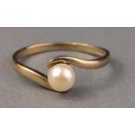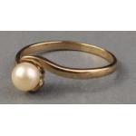 A ladies 375 hallmarked ring set with a pearl, size P, gross weight 1.68g approx