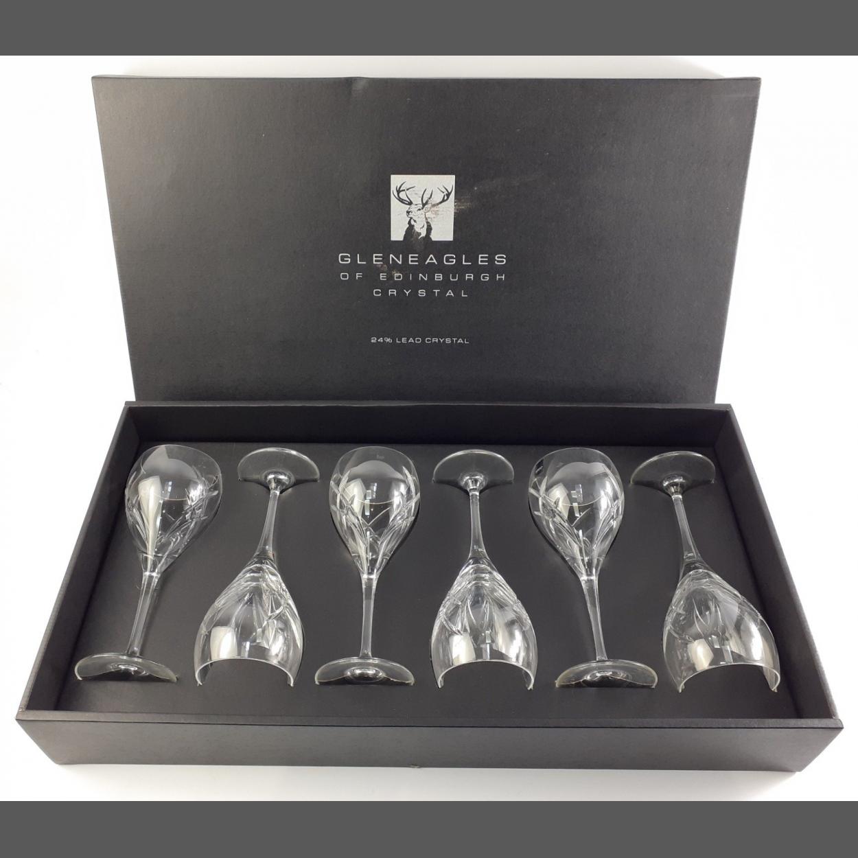 A boxed set of 6 GLENEAGLES of Edinburgh wine glasses each 20cm approx